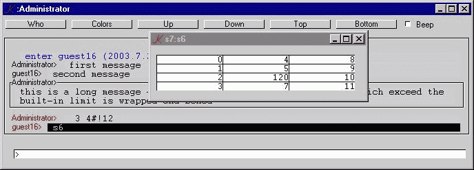 To send a message, type up to a 1000 characters in the input box at the bottom of the window. Messages are wrapped into X positions.